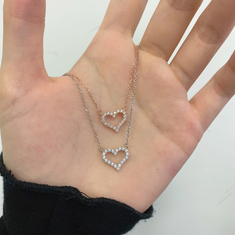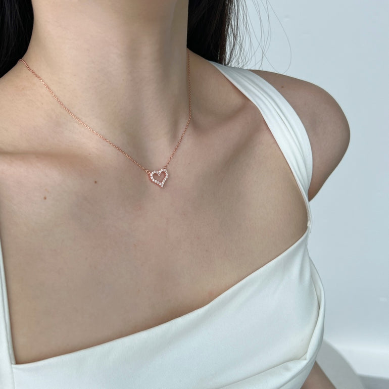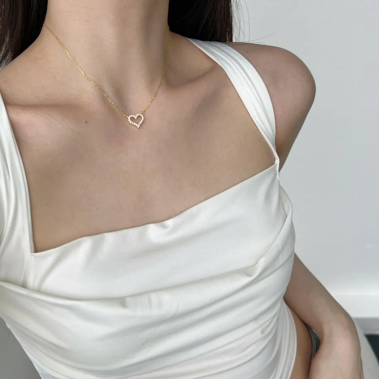 Dainty Pave Heart Pendant Necklace;